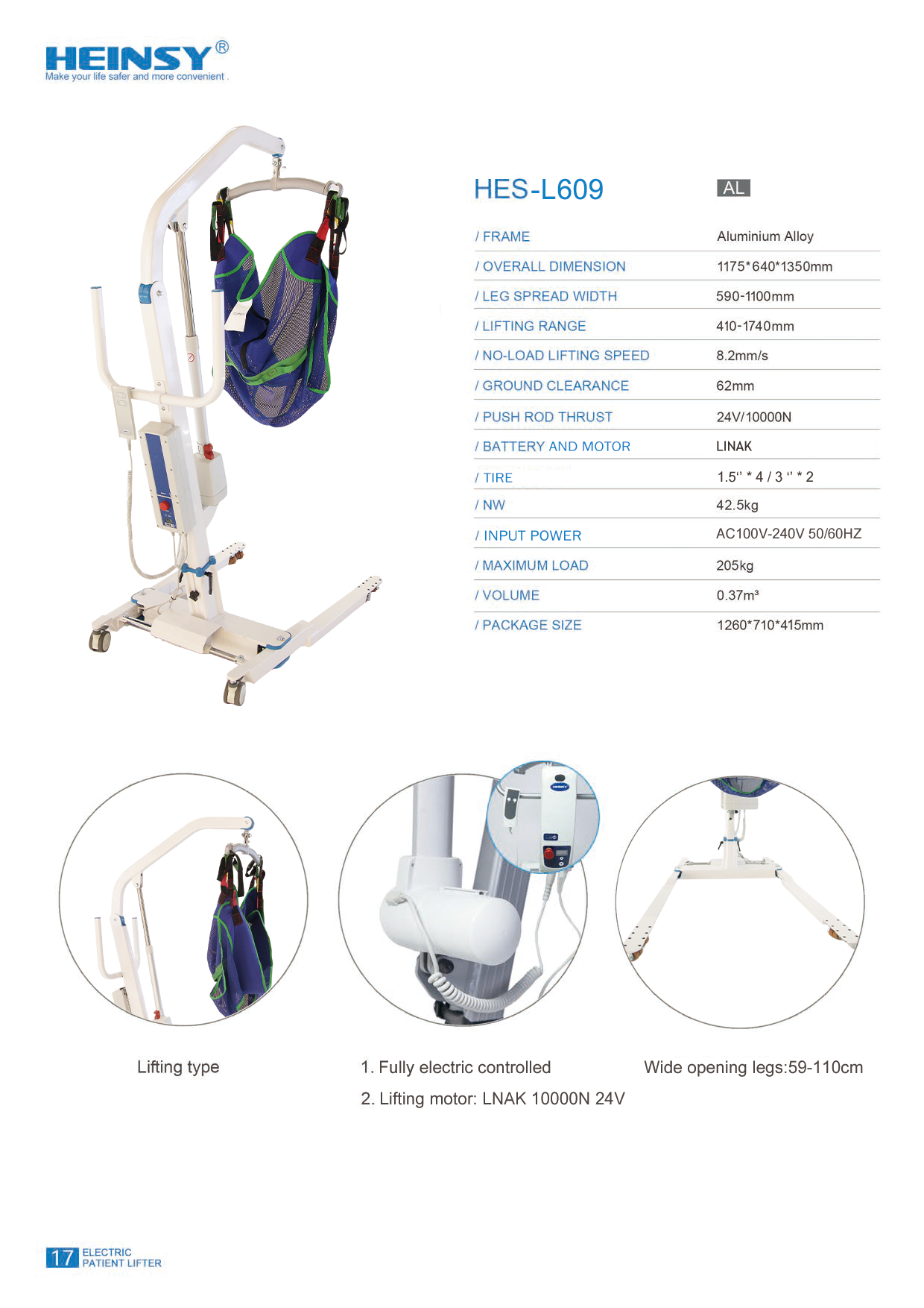 Полностью автоматический подъемник L609, наш звездный продукт, заслужил высокую оценку компании James за превосходные характеристики и удобный дизайн. В нем используется двигатель LINAK, обеспечивающий стабильную и надежную работу. Электрическая система управления проста в использовании, значительно облегчает работу оператора для лиц, осуществляющих уход . Регулируемая ширина раскрытия ножек 59–110 см позволяет гибко адаптироваться к различным сценариям. Мощный подъемный двигатель LINAK 10000N 24 В обеспечивает безопасные и плавные операции подъема. ( Обе ножки имеют сверхнизкий дорожный просвет (6,2 см), что позволяет плавно адаптироваться к различным сценариям использования низкой платформы. )